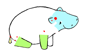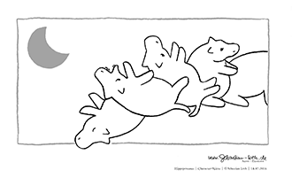 • Auch die seit „Jolante sucht Crisula“ verwendete Schrift "P22-Garamouche" wurde wieder verwendet. Langsam wird sie zu einem kleinen Wieder-erkennungszeichen (über drei Verlage hinweg). Sie harmoniert hervorragend mit den Illustrationen. • Der Manuskripttitel "Hippopotamus" blieb im finalen Titel "Schlaf schön, dicker Kuss, kleines Hippopotamus" bestehen. Es handelt sich um die biologische Bezeichnung für ein Nil- bzw. Flusspferd. Ein ganz besonderes Wort, das ich sehr mag. Und für jeden, der angeben will – der Plural lautet: Hippopotami ;-) • Bei diesem ersten Pappbilderbuch habe ich den Spagat zwischen meinem reduzierten, eher künstlerischen Illustrationsstil und den Anforderungen an diese Art Bücher für die jüngsten Leser wirklich unterschätzt. Mit dem Ergebnis sind wir aber alle mehr als zufrieden ;-) |