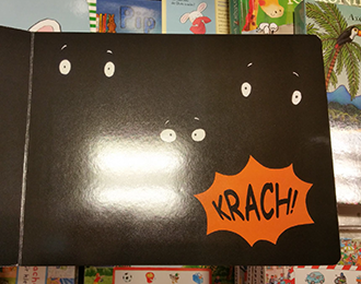 ![]() • Erste von zwei Skizzen vom 18.07.2016. Aufgrund des recht starren Characters im ersten Manuskript, bat der Verlag noch einmal um Visualisierung, wie sich die Mimik verändern kann. ![]() • Ich hätte nicht gedacht, dass man sich via Foto so gut über das Glänzverhalten von Silberfolie austauschen kann (YYB.21-1). Die Folie wurde jedoch aufgrund von Lieferproblemen während der Produktion noch einmal abgeändert. ![]() • Und dann ertappt man sich dabei, dass man mitten in einer großen Kölner Buchhandlung verschiedene Lackspiegelungen aus Pappbilderbüchern abfoto-grafiert, um sich über den Unterschied zwischen matt, seidenmatt und glänzend ein eigenes Bild machen zu können ;-) ![]() • Ursprüngliche Milch-Szene |