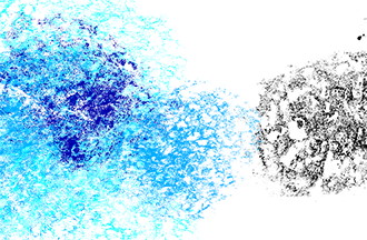 Das Muster wiederum ist eine Überlagerung von Strukturen, die ich mittels schwarzer Farbe und Naturschwamm aufs Papier gebracht habe. Ziel war es, die cyanähnliche Färbung nachzuahmen. |