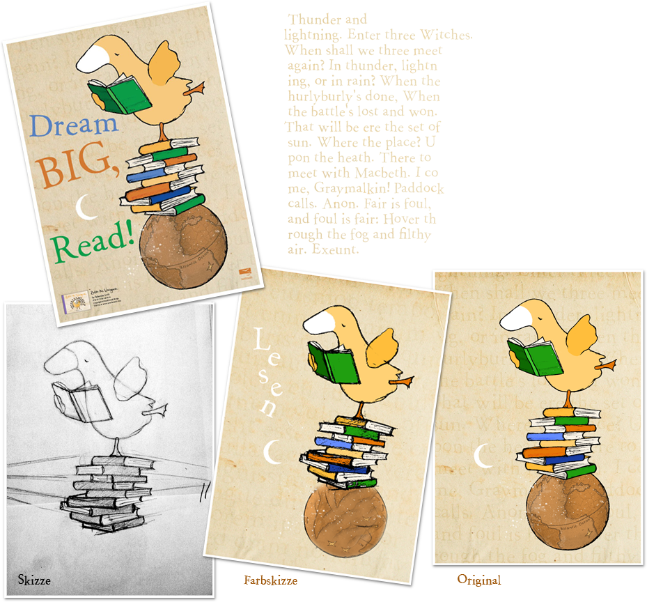 Jolante-Poster "Macbeth" Für die American Library Associaton (www.ala.org) entstand im Dezember 2011 ein Jolante-Poster im DIN-A2-Format. Das Poster wird zu Werbezwecken beim "Midwinter Meeting" in Dallas TX 2012 Januar 20-24 kostenlos abgegeben. Im Hintergrund findet sich ein Textzitat von William Shakespear. Es handelt sich um die Eröffnungsszene aus Macbeth: |